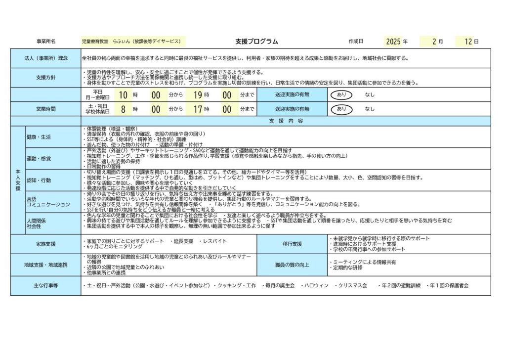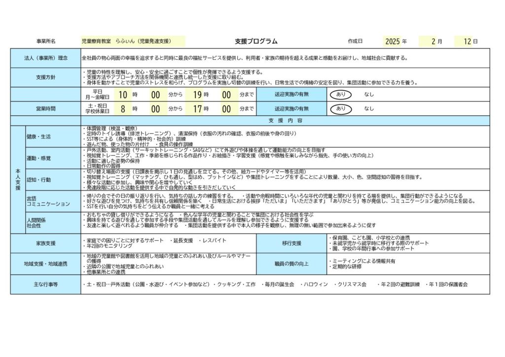 法令基準に基づき、各サービスの支援プログラムをホームページで公表させていただきます。