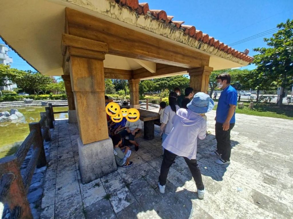 今回の避難場所は、西崎親水公園のバスケコート側の東屋。